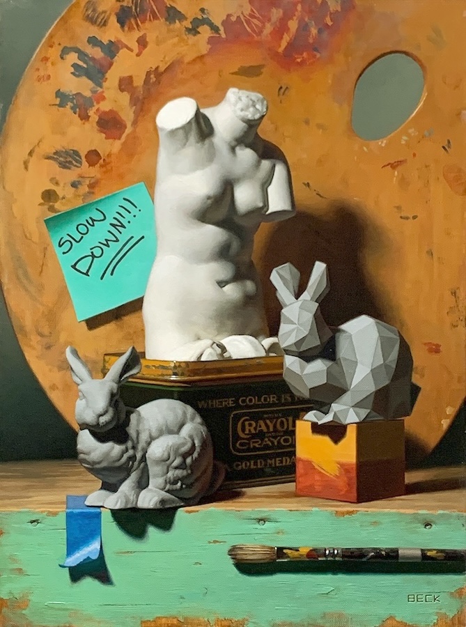Julie Beck is an award winning oil painter specializing in tromp l'oeil, still life, and figurative oil paintings. Julie completed her training at ARA Boston in 2016 and has been teaching here since 2013. Her honors include multiple Gold Medals at the Guild of Boston Artist’s Annual Non-Member Competition, 2016 and 2019 Best in Show for the Richeson Annual Still life and Floral Competition, and has been a finalist in the Art Renewal Center’s Annual Salon 4 years in a row with honorable mentions as well as First Place still life. She was selected to participate in and won third place in the 2017 Still life Painting Competition at the Grand Central Atelier. She is also currently a member at the Saint Botolph Club. Her work can be found in private collections throughout the US and internationally. For more about Julie and her work, visit http://www.juliebcreative.com